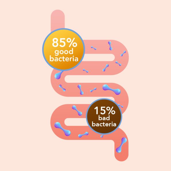 A healthy gut should be composed of a ratio of 85% good bacteria and 15% bad bacteria. The key is to promote the growth of good bacteria while reducing the amount of the bad.