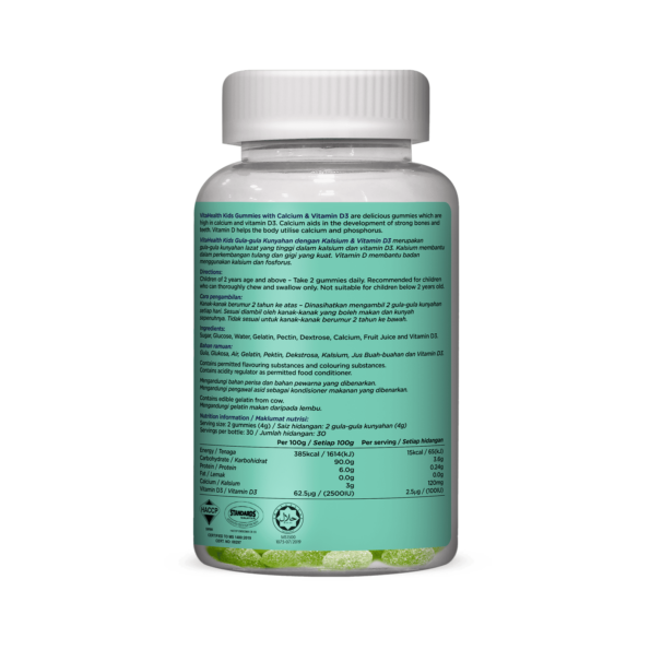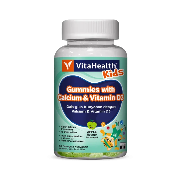 VitaHealth Kids Gummies with Calcium & Vitamin D3 are great-tasting, apple-flavoured gummies providing vital nutrients for strengthening bones and teeth.