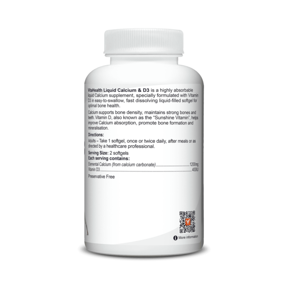 VitaHealth Liquid Calcium & D3 is a highly bioavailable liquid-calcium supplement, specially formulated with vitamin D for strong and dense bones.