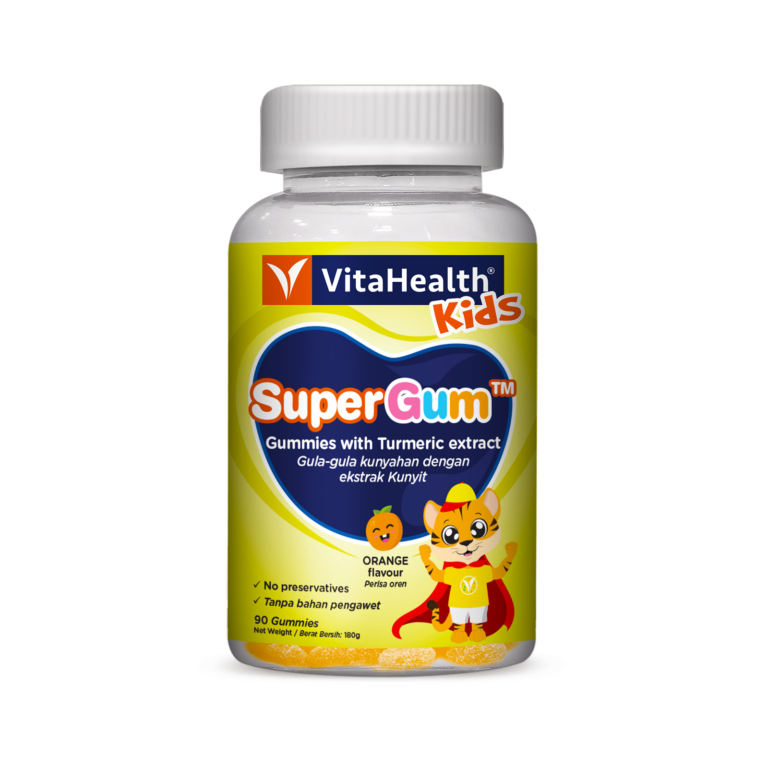VitaHealth Kids SuperGum is specially designed with turmeric extract to boost children’s natural defences against several childhood health conditions.